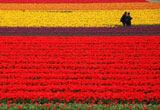 航拍荷兰飞跃五彩的郁金香花田
