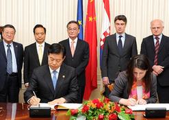 吴邦国和克罗地亚总理出席合作备忘录签字仪式