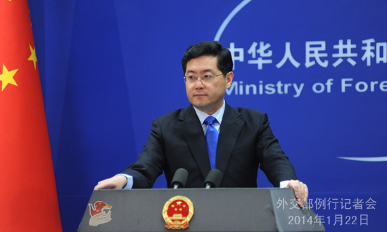 2014年1月22日,外交部发言人秦刚主持例行记者会。