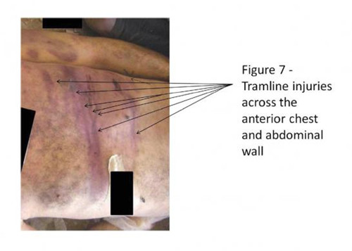 叙利亚政府报告中照片的扫描图,照片中显示了“囚犯”受到酷刑后的伤痕。