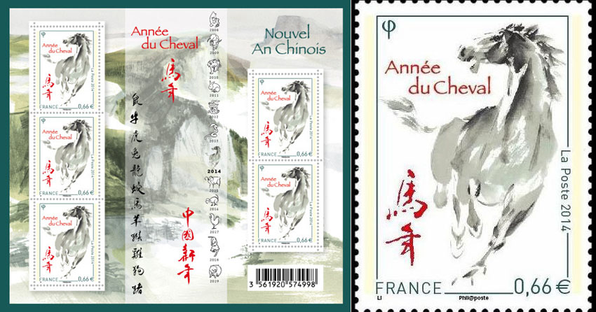 据法国欧洲时报网报道,法国国家邮政总局在连续九年发行鸡年、狗年、猪年、鼠年、牛年、虎年、兔年,龙年和蛇年农历中国生肖纪念邮票之后,2014年将第10次发行中国生肖纪念邮票,法国中国“马年”邮票。马在中华民族的文化中地位极高,具有一系列的象征和寓意。