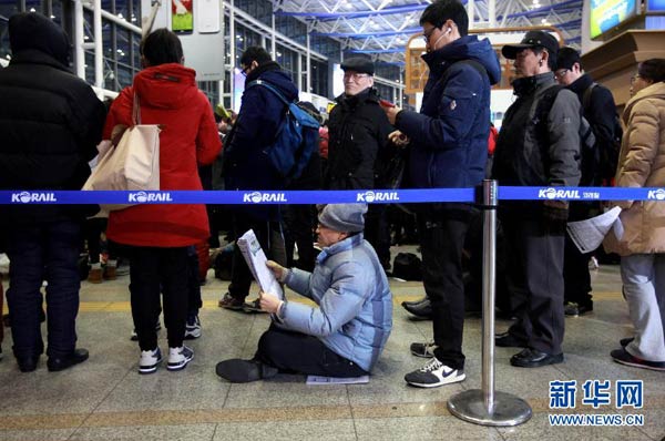 韩国:春运也疯狂 通宵排队买车票