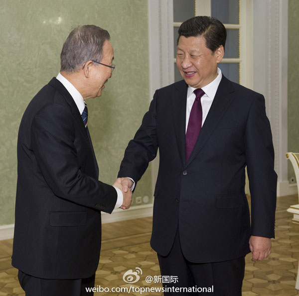 新华网北京2月7日电 据新华社“新国际”微博报道,习近平7日在索契会见潘基文时强调,实现本地区国家睦邻友好,就必须坚持正确历史观,巩固战后国际秩序。明年是联合国成立70周年,也是世界反法西斯战争和中国人民抗日战争胜利70周年。希望联合国推动国际社会办好有关纪念活动。