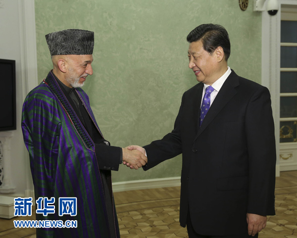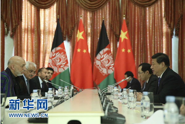 习近平指出,2014年之后,阿富汗的命运将更加紧密地同地区国家联系在一起。中方支持阿富汗融入地区经济合作。中方将于8月举办阿富汗问题伊斯坦布尔进程第四次外长会,我们愿同阿方密切合作,办好这次会议。中方也愿推动上海合作组织在阿富汗问题上发挥更大作用。