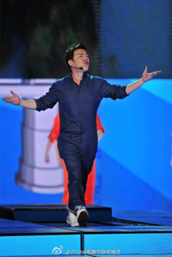 答:那个衣服真的不是爱马仕,是国内设计师专门为演出制作的,之前还做了一款浅蓝色的,后来为了和背景区分开,又做了一款深蓝色的。设计上,希望服装能略微时尚一点,但也要体现出普通老百姓的状态,所以就做了一个工装裤。
