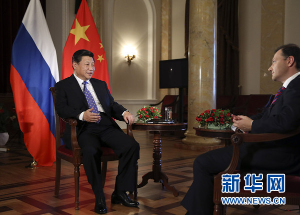 习近平:去年3月,我在当选中国国家主席几天后,就应普京总统邀请来到贵国进行国事访问,贵国是我当选中国国家主席后第一个访问的国家。那次,我同普京总统进行了长时间的议题广泛、坦诚深入的交流,就加强中俄全方位战略协作达成重要共识,作出全面规划。此后我们又4次会晤和见面。昨天,我同普京总统会晤时共同作了回顾。我们共同推动两国在涉及彼此核心利益的重大问题上相互坚定支持,把两国关系的政治优势转化为合作优势,双方经贸、能源、高技术、地方、人文、国际事务等各领域合作取得丰硕成果,促进了两国共同发展繁荣,维护了国际公平正义和世界和平稳定。我对中俄关系发展取得的成果十分满意。当前中俄关系发展是基础最牢、互信最高、地区和国际影响最大的一个时期。