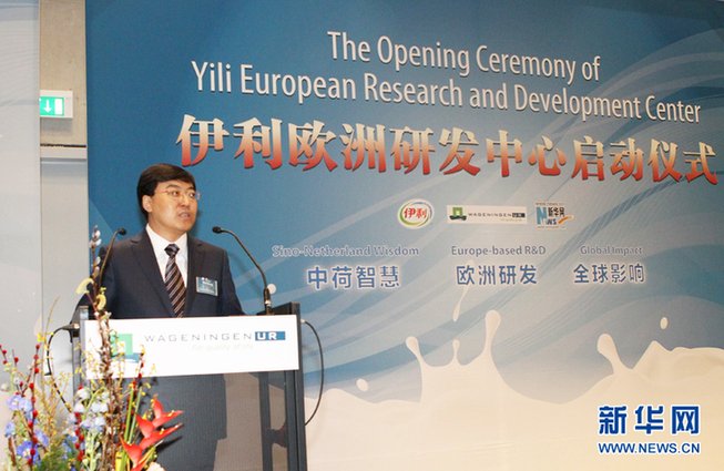 新华网2月25日电 当地时间2月25日,伊利欧洲研发中心签约暨揭牌仪式在荷兰瓦赫宁根市举行。该中心将是中国乳业目前为止规格最高的海外研发中心,是由全球排名第12位的伊利集团联手欧洲生命科学领域的顶尖学府瓦赫宁根大学,与欧洲“食品谷”15000多名研发人员一起,共同打造的一个背靠荷兰、面向欧洲的研发实体。