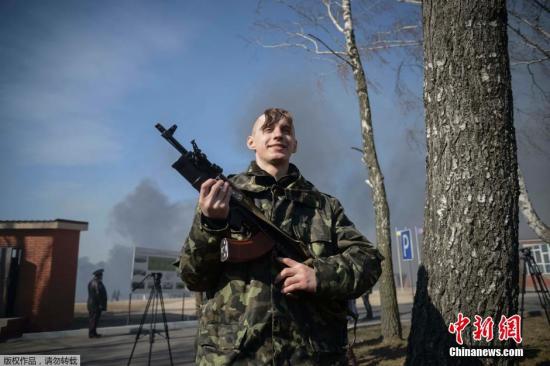 当地时间2014年3月14日,乌克兰基辅,乌克兰志愿者在基辅外的训练场进行军事训练。乌克兰召集所有后备军人,并下令武装军队尽速进入备战状态。