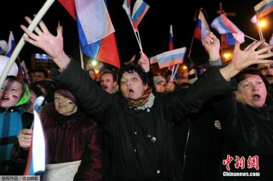 克里米亚稍早时通过全民公投,决定是否加入俄罗斯联邦。克里米亚公投委员会委员长马里谢夫(Mikhail Malyshev)宣布,对公投100%选票的统计显示,96.77%的选民支持加入俄罗斯联邦。