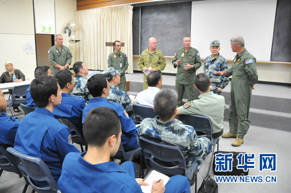 3月22日,中国空军飞抵澳大利亚珀斯皮尔斯空军基地后,与澳大利亚空军就搜救工作交换意见。新华社记者 黄书波 摄