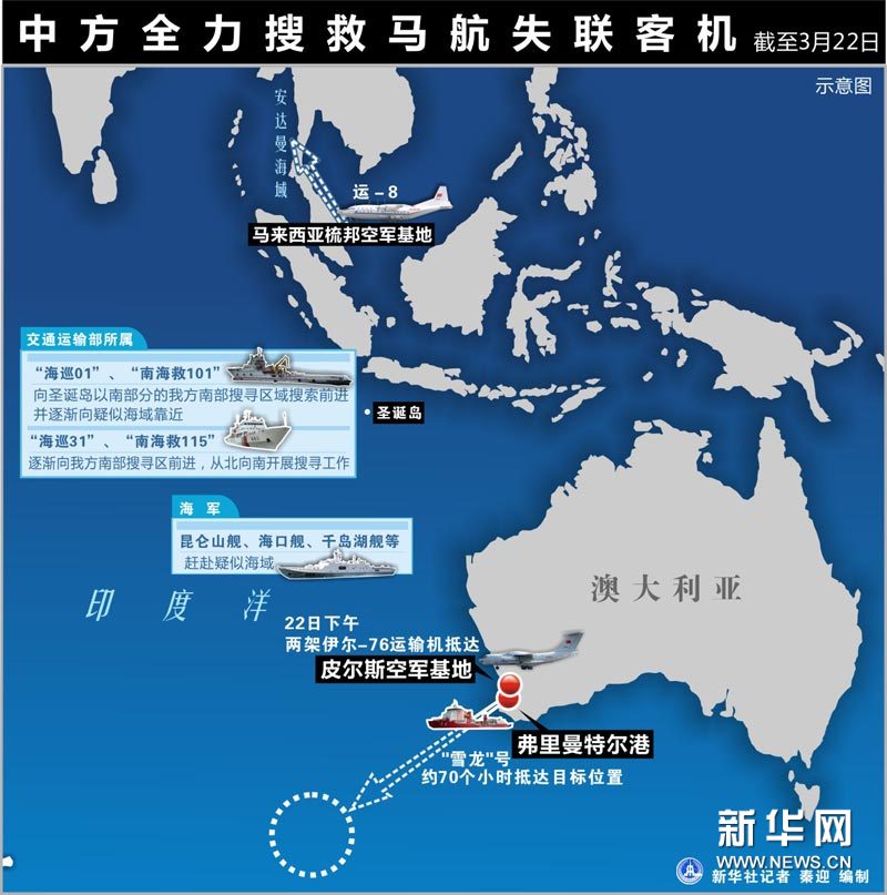 图表:中方全力搜救马航失联客机(截至3月22日) 新华社记者 秦迎 编制