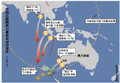 由于目标海域距澳大利亚本土超过2000公里,空军的4架反潜机只能在其上空搜寻约两个小时,另外两架民用庞巴迪飞机可以搜寻4个小时左右。