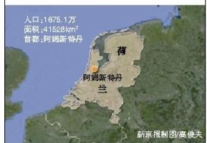 荷兰王国位于欧洲西北部,东邻德国,南接比利时,西、北濒北海。面积41528平方公里,人口1675.1万。首都为阿姆斯特丹。