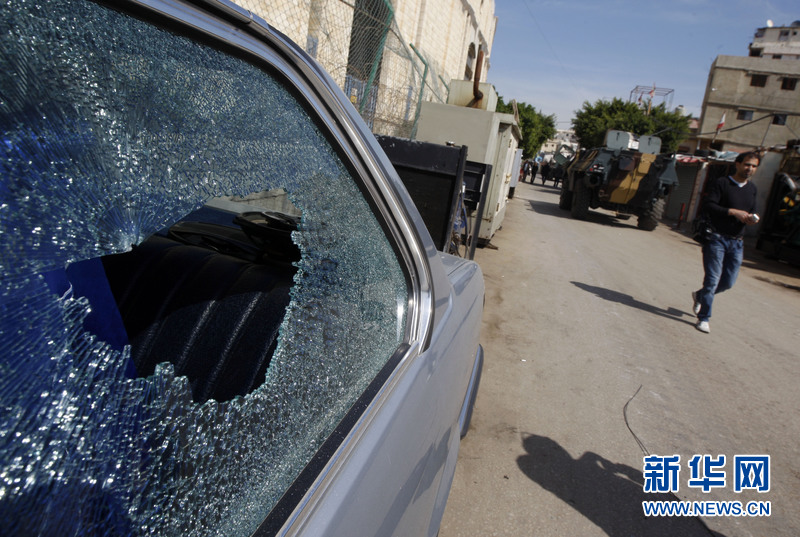 3月23日,黎巴嫩首都贝鲁特枪战现场受损汽车。