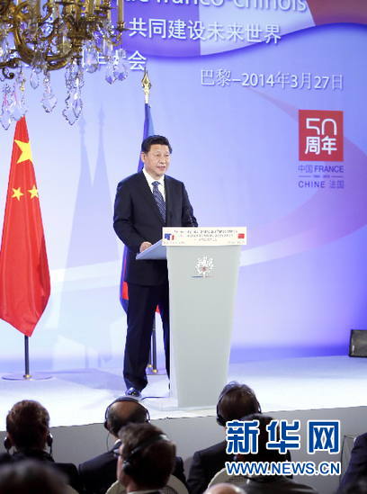 3月27日,国家主席习近平在巴黎出席中法建交50周年纪念大会并发表重要讲话。 新华社记者 鞠鹏 摄
