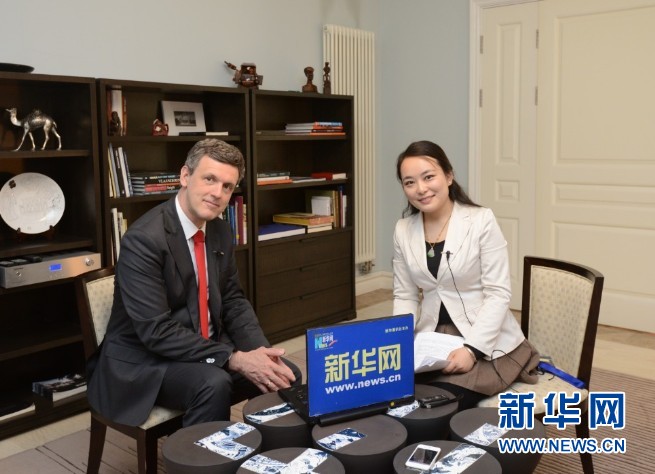 比利时王国驻华大使马怀宇与新华网记者。新华网记者郭小天摄