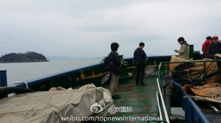 搭载记者前往出事海域的船只(图片来源:新国际微博)