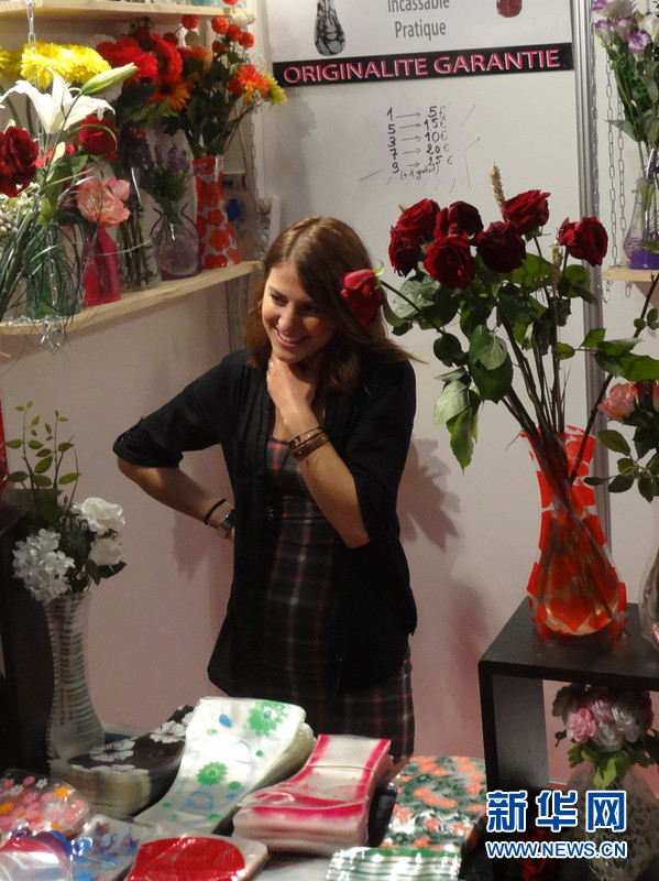 一位参展的女士在现场接受新华社采访时表示,她带来的展品各种样式和颜色的花瓶,这些花瓶其实是用质地较硬的塑料袋制成。不用的时候可以压扁便于保存,将水灌满后就是个花瓶,不但很漂亮,而且很稳定。