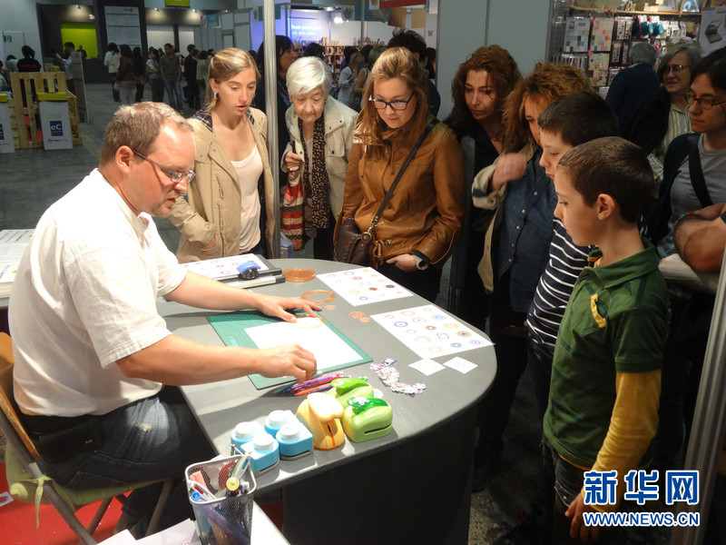 4月26日,巴塞罗那第一届“手工艺品节”(Handmade Festival Barcelona)上,一些参展者向游客介绍如何进行手工制作。