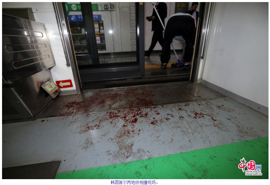 当地时间2日下午3时32分许,韩国首尔2号线地铁去往蚕室方向的两班列车在上往十里站发生追尾事故,造成170余名乘客受伤,部分伤者被送往附近的汉阳大学医院。CFP