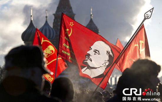 俄罗斯大约10万民众1日在首都莫斯科红场举行大游行,庆祝“五一”国际劳动节。这是自1991年苏联解体以来首次。