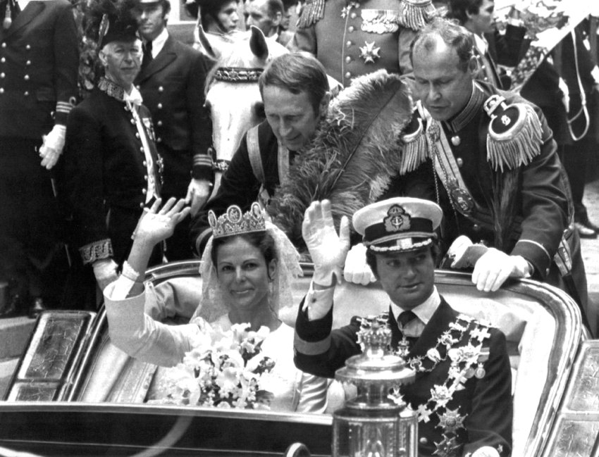 资料图片:1976年7月19日,瑞典卡尔十六世·古斯塔夫国王迎娶了来自德国海德堡的妻子西尔维娅王后。