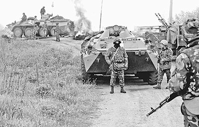 乌克兰东部的3个州从3月开始爆发游行示威活动,许多反政府抗议者走上街头,要求进行联邦制改革,以拥有更大的自治权。4月初以来示威活动逐渐演化为骚乱,东部许多政府机构被抗议者占领,其中位于顿涅茨克州的小城斯拉维扬斯克更是其中的“刺头”,当地不仅组织反政府武装赶走政府并自行选举了“人民市长”,还在通往市区的要道建立岗哨进行封锁,并在4月25日扣留了来自欧安组织的军事核查人员,该市因此成为乌军警打击的重点。