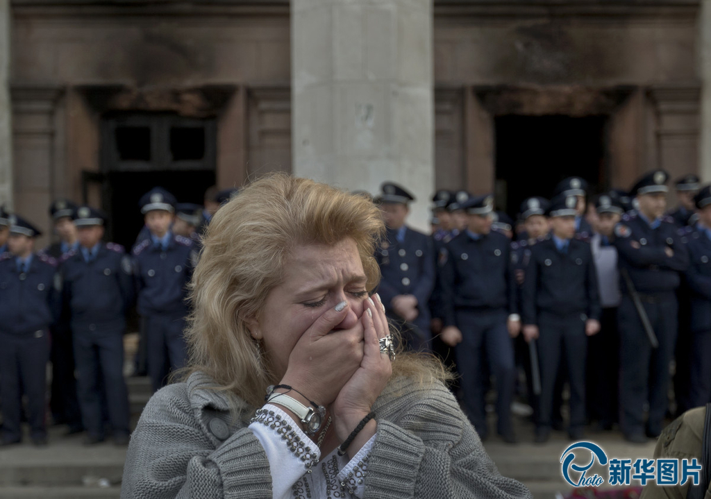 乌警方组人墙守卫敖德萨被焚工会大楼(高清组图)