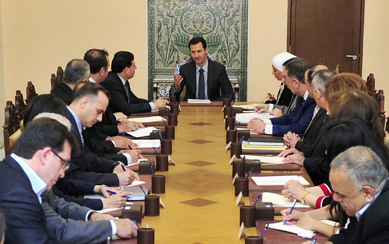 叙利亚总统巴沙尔 阿萨德5月3日在大马士革会见叙利亚救援委员会成员。据报道,阿萨德已注册将于5月参加下任总统大选。