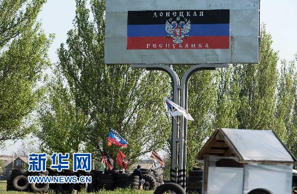 这是5月3日在乌克兰东部距斯拉维扬斯克约50公里的康斯坦丁诺夫卡拍摄的一处交通检查站。乌克兰正规军部队、内卫部队和国民近卫军部队2日凌晨联手对东部小城斯拉维扬斯克发起攻势。目前斯拉维扬斯克周边局势紧张。新华社记者贾宇辰摄