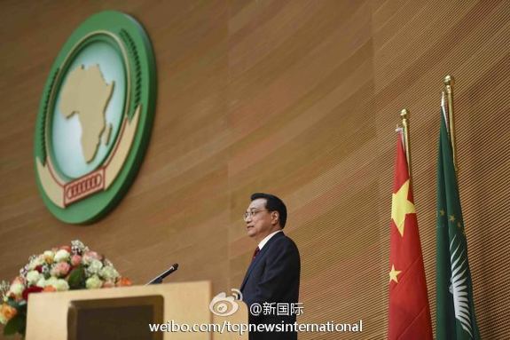 李克强5日在非盟会议中心发表演讲。(记者谢环驰摄)
