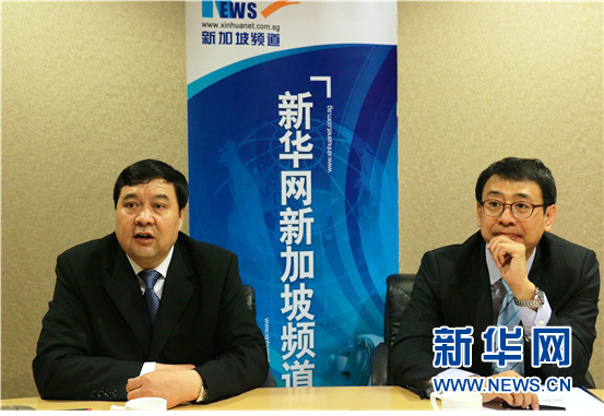 图为中国东方航空股份有限公司副总裁田留文先生(左)、中国东方航空股份有限公司客运营销委员会常务副总经理曾永超先生接受新华网新加坡频道专访