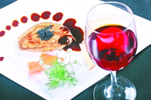法国鹅肝配红酒。