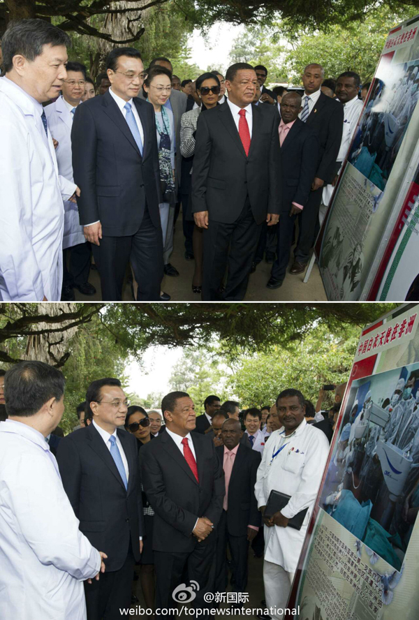 李克强亲手为埃塞患者拆纱布