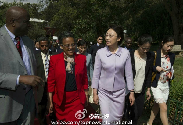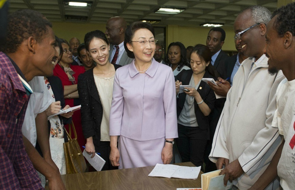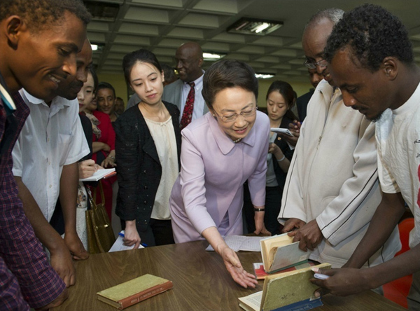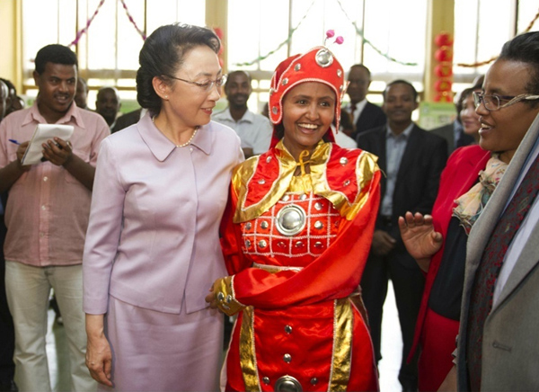 新华网北京5月6日电 据新华社“新国际”微博报道,李克强总理夫人程虹5日在埃塞俄比亚总理夫人罗曼·塔斯法耶的陪同下参观了亚的斯亚贝巴大学,观摩汉语授课,与学生们交流,观看学生们的中国文化才艺展示,还捐赠了书籍、计算机等物品。程虹说,你们是文化的纽带,感谢你们对中国人民的情谊。你们对中国文化的热爱感动了我,也会感动中国人民。