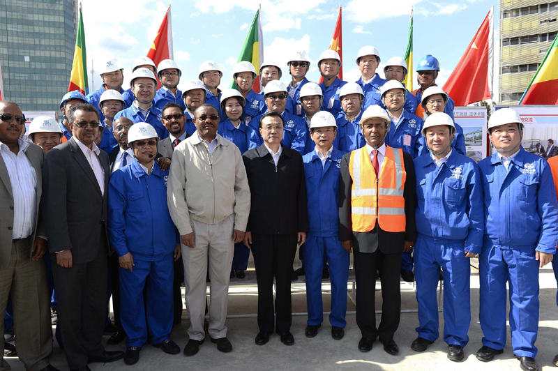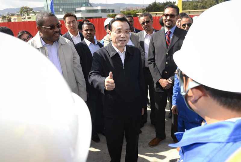 新华网北京5月6日电 据中国政府网微博报道,李克强总理当地时间5日下午在埃塞俄比亚总理海尔马里亚姆陪同下,来到建设中的亚的斯亚贝巴轻轨项目工地考察,慰问建设工人,并共同出席了亚的斯亚贝巴至阿达玛高速公路的一期竣工、二期开工典礼。