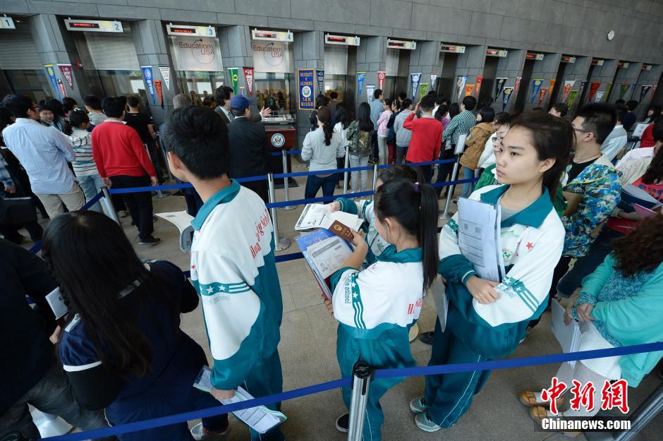 5月6日,美国驻华使馆在位于北京的领事处签证大厅举办学生签证日活动,当天不少中国学生前往办理赴美留学签证。中新社发 侯宇 摄