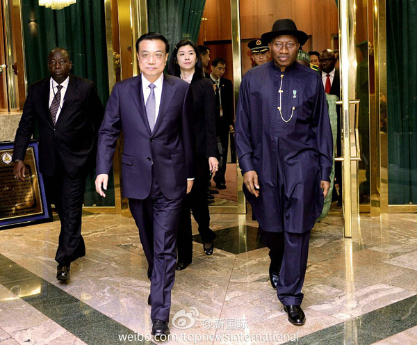 新华网北京5月8日电 据新华社“新国际”微博报道,李克强7日与尼日利亚总统乔纳森会谈。乔纳森感谢李克强在尼安全形势严峻的情况下如期到访,是患难见真情。李克强表示中方将对尼提供各种支持和帮助,同时希望尼方切实加强对在尼中国公民的保护。目前中国在尼有6.5万人,是我在非人员最多的国家之一。