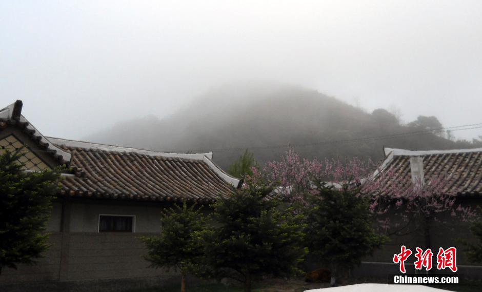 在朝鲜咸镜北道七宝山脚下的宝村里民俗村,是朝鲜对外国游客开放程度最高的村庄。5月上旬,记者跟随从吉林省图们市出发的一个旅行团来到这里。村庄占地7公顷,有20户朝鲜居民。村庄离大海非常近,村民大多从事渔业。图为临近海边的民俗村,经常云雾缭绕。中新社发 陈博宜 摄