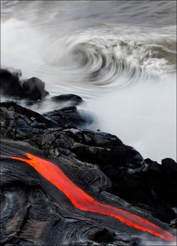 摄影师冒死拍摄夏威夷岩浆入海景象 宛若"地狱之火"(高清组图)