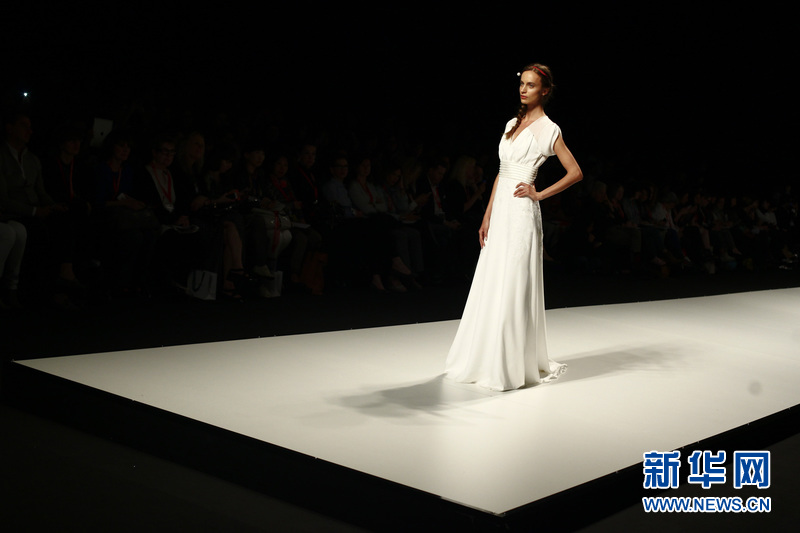 模特在T台上展示西班牙品牌Victorio & Lucchino的婚纱。Victorio & Lucchino是来自西班牙塞维亚 (Sevilla)的两位男服装设计师的名字,Victorio和Lucchino同时也是西班牙本土知名时装设计师组合之一。