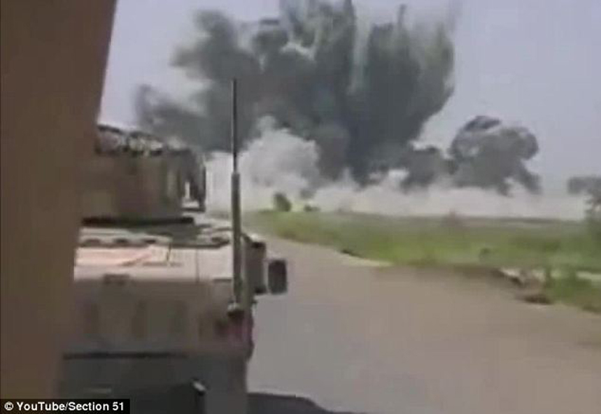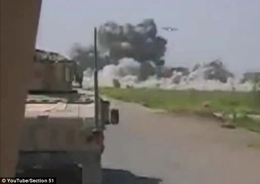 硝烟散尽后,拍摄者给'UFO'拍摄了特写镜头,它看起来并不像是美军现存的任何一种无人机(视频截图)