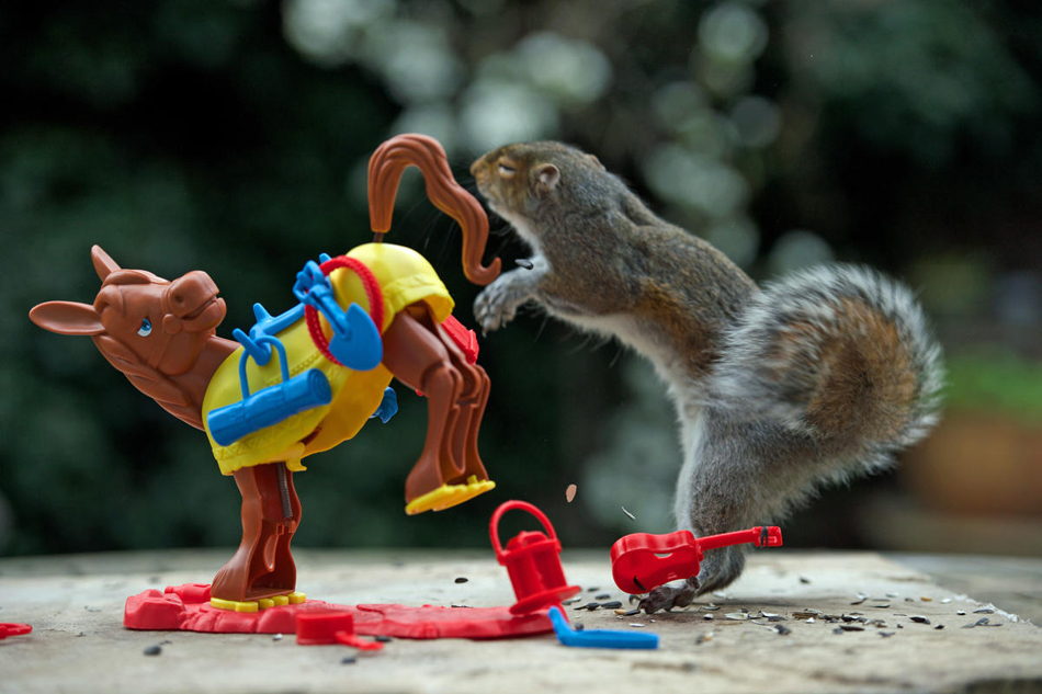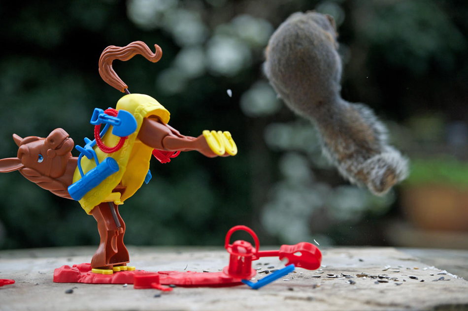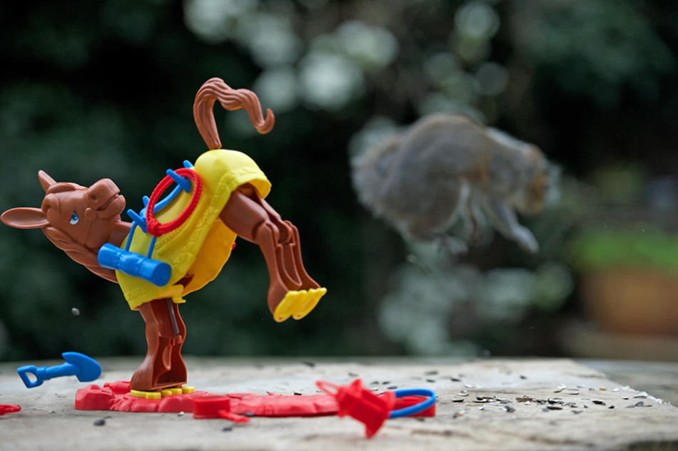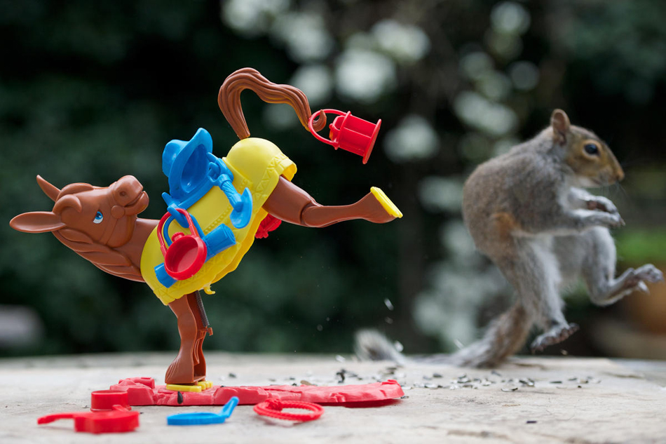 小松鼠被一只玩具马踢开的动态效果之一