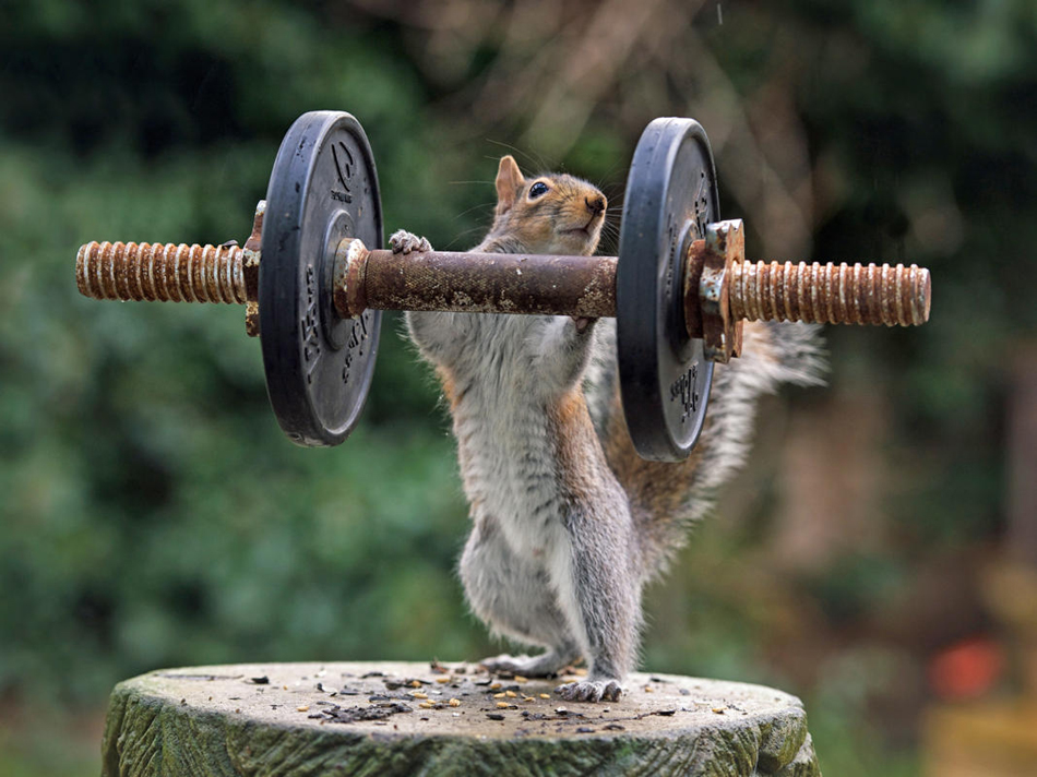小松鼠举重尽显萌态