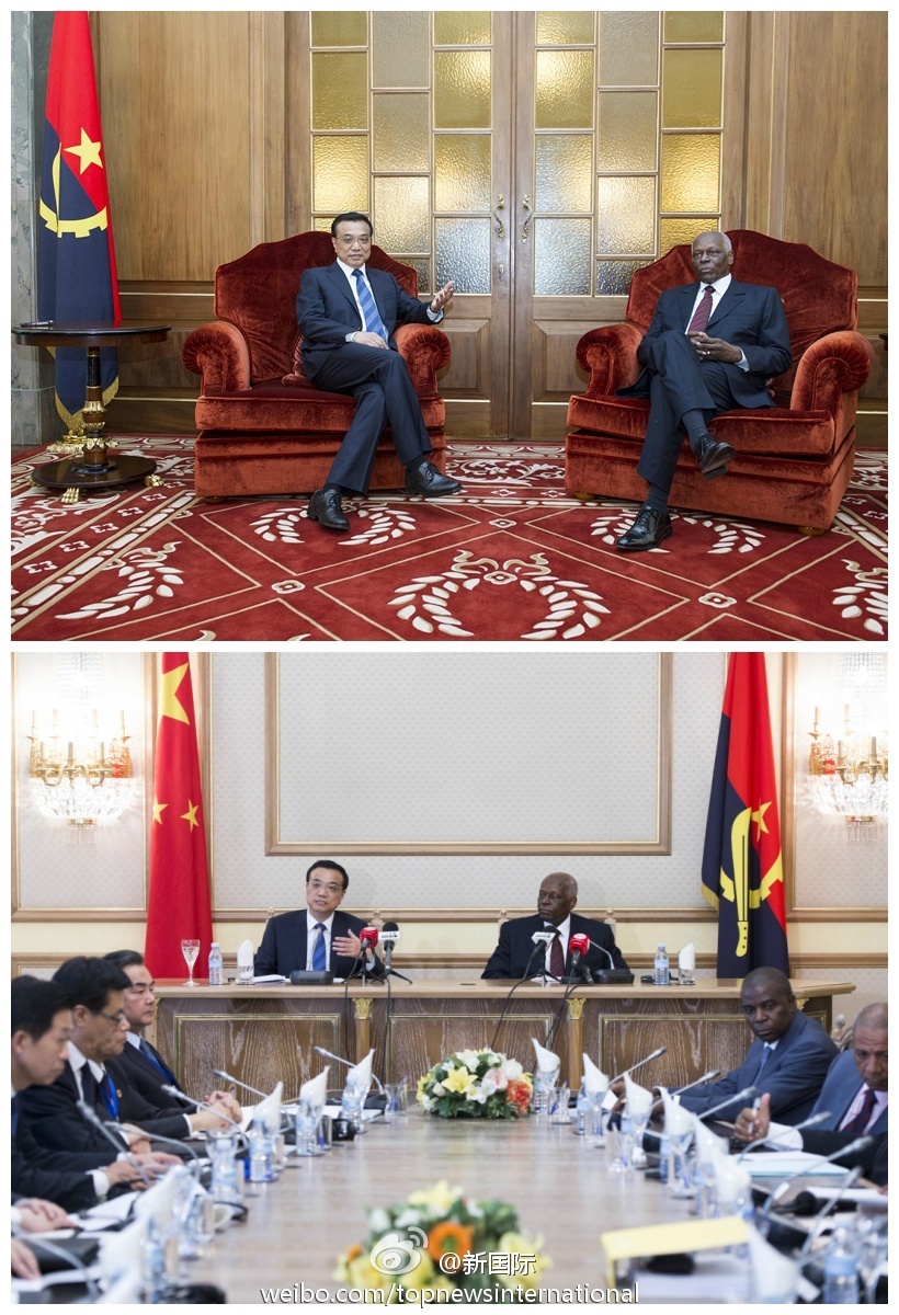 新华网北京5月10日电 据新华社“新国际”微博报道,李克强总理9日与安哥拉总统多斯桑托斯会谈时说,中方要求在安公民遵守当地法律、尊重当地习俗,希望安方继续为中国投资提供便利,确保中方机构和人员安全。多斯桑托斯承诺保证在安中国公民和企业的工作生活安全。
