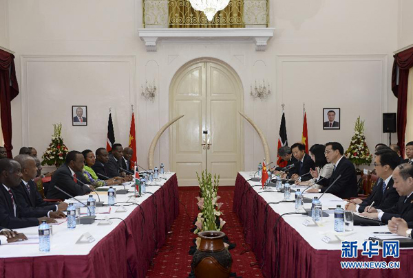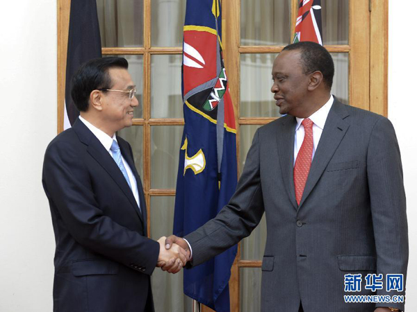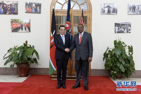 新华网内罗毕5月10日电(记者袁炳忠 明金维)国务院总理李克强10日上午在肯尼亚国家宫同肯总统肯雅塔举行会谈。