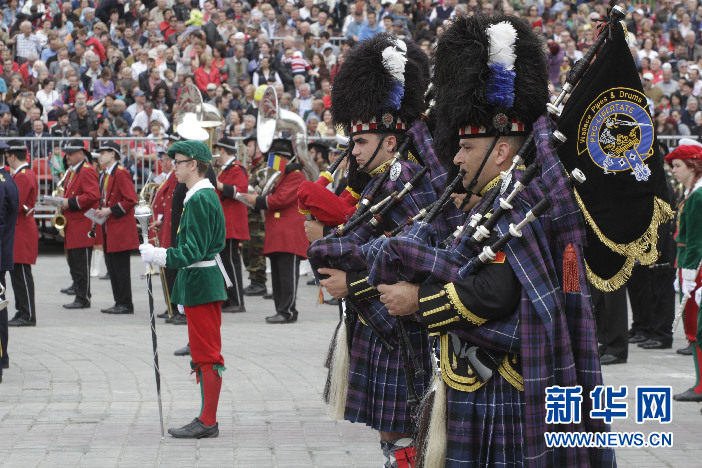 5月10日,来自保加利亚、克罗地亚、法国、意大利、英国、荷兰、马耳他、波兰、瑞士、苏格兰、西班牙、土耳其以及东道国罗马尼亚的20支铜管乐队聚集首都布加勒斯特,参加由布加勒斯特市政府主办的铜管乐队节,作为庆祝“欧洲日”系列活动之一。20支铜管乐队中午从市中心统一广场出发,沿统一大道演奏进入议会宫前宪法广场,吸引众多市民观看。(佩特雷斯库 摄)