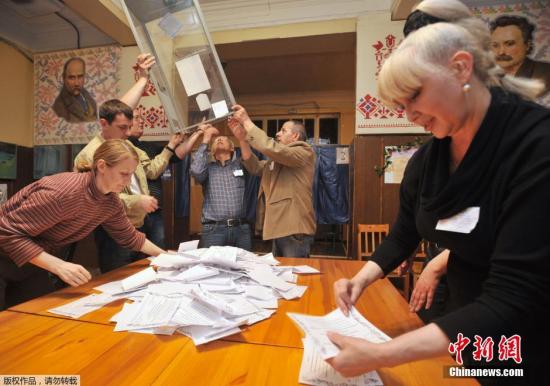 当地时间2014年5月11日,乌克兰东部地区选举工作人员开始公投计票工作。