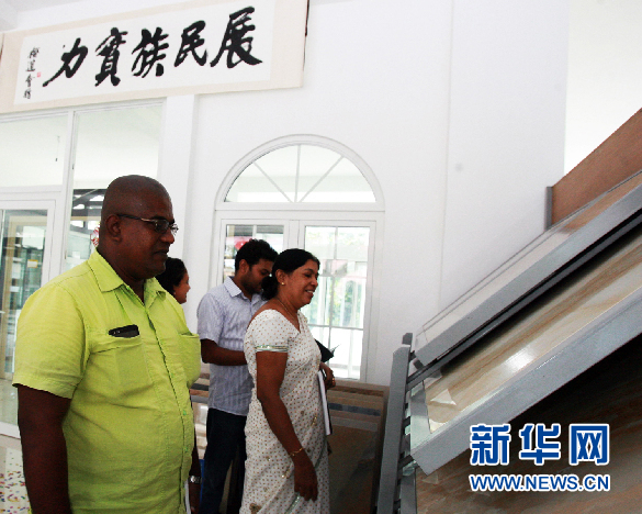 几名当地消费者参观竣工仪式上展示的兴利嘉塑胶科技有限公司建材产品。记者黄海敏 摄