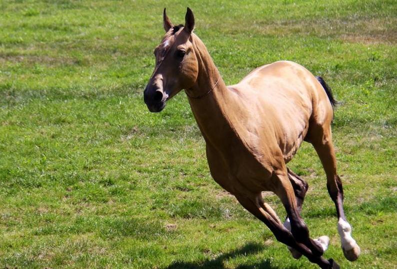5月2日,在土库曼斯坦首都阿什哈巴德国际综合赛马场内,一匹阿哈尔捷金马(中国称汗血马)在奔跑。